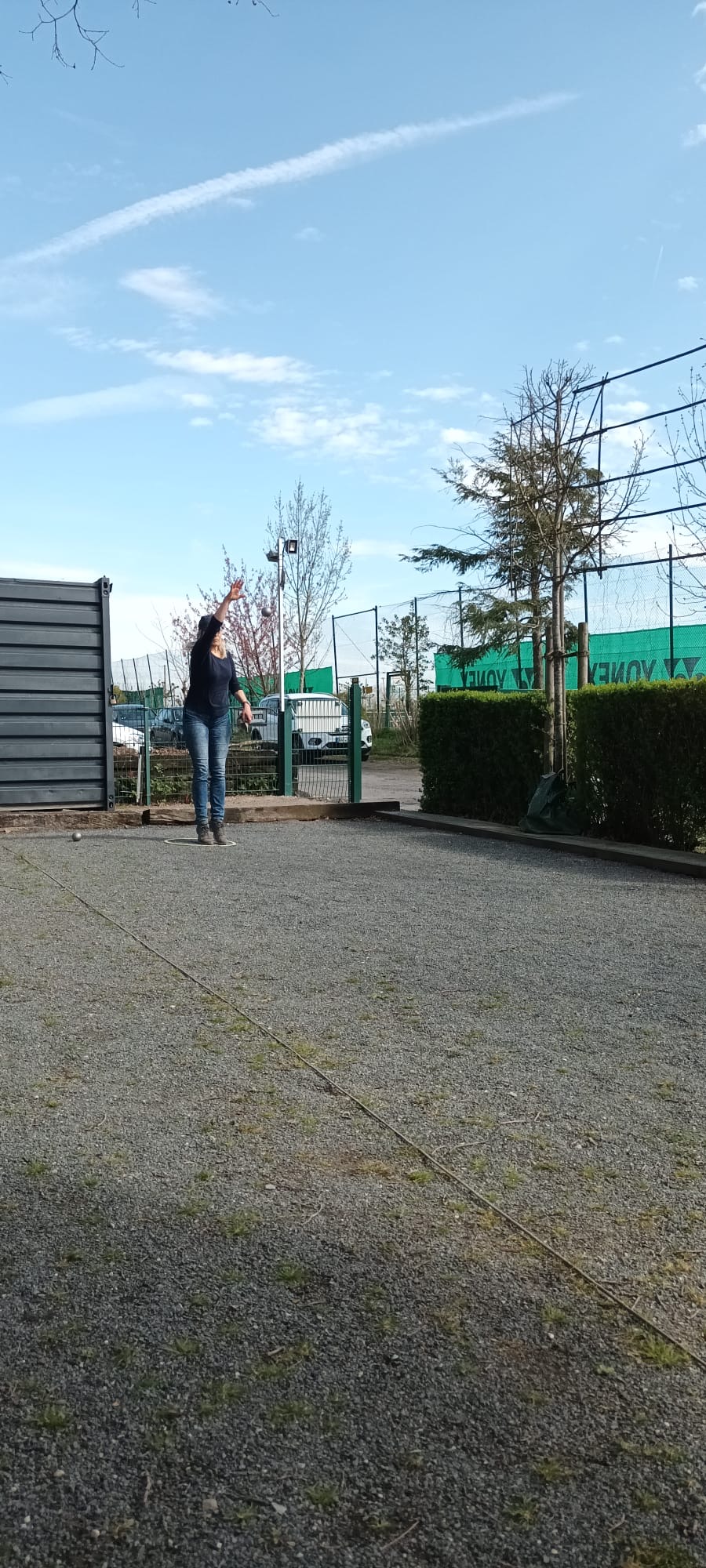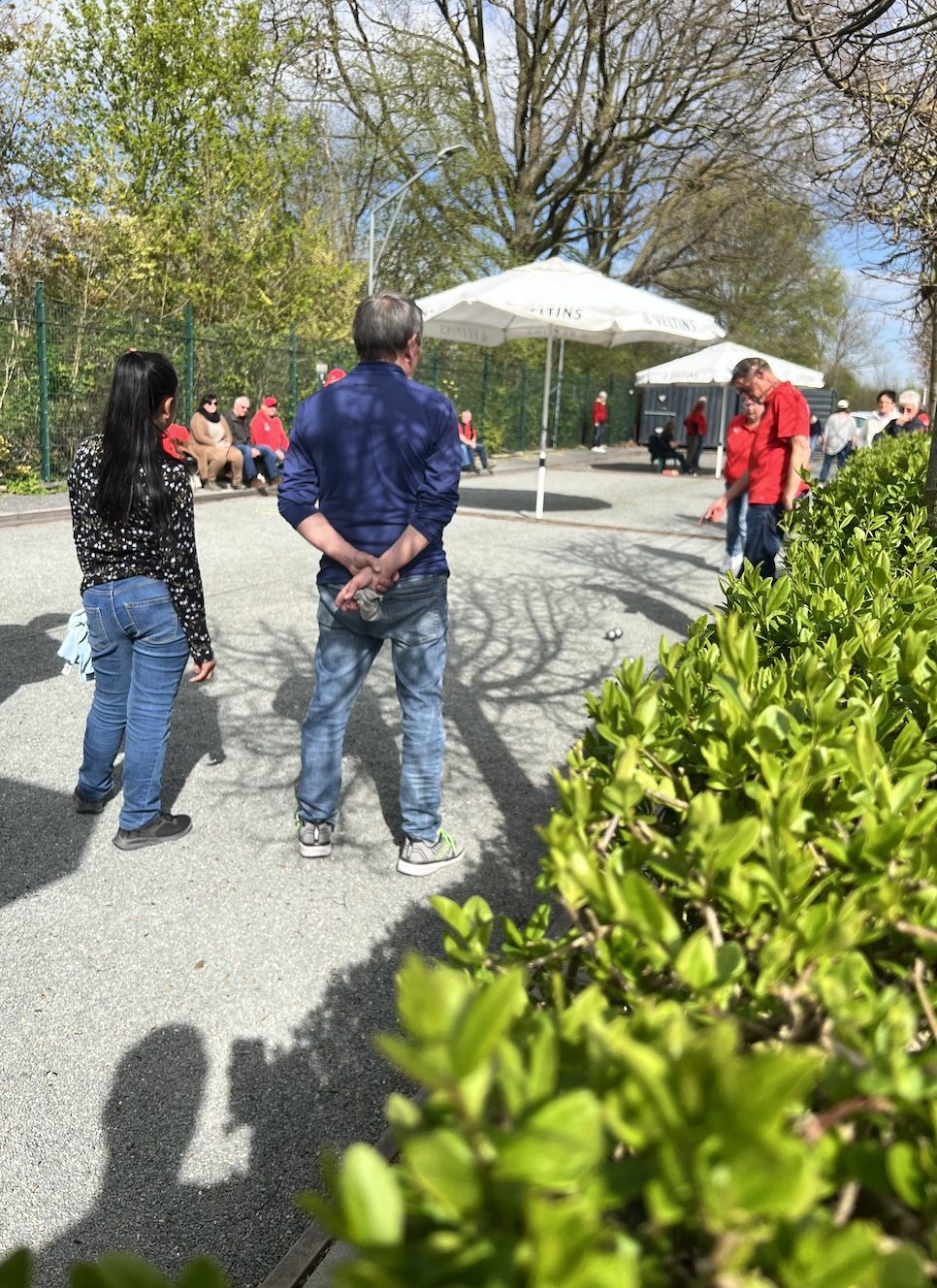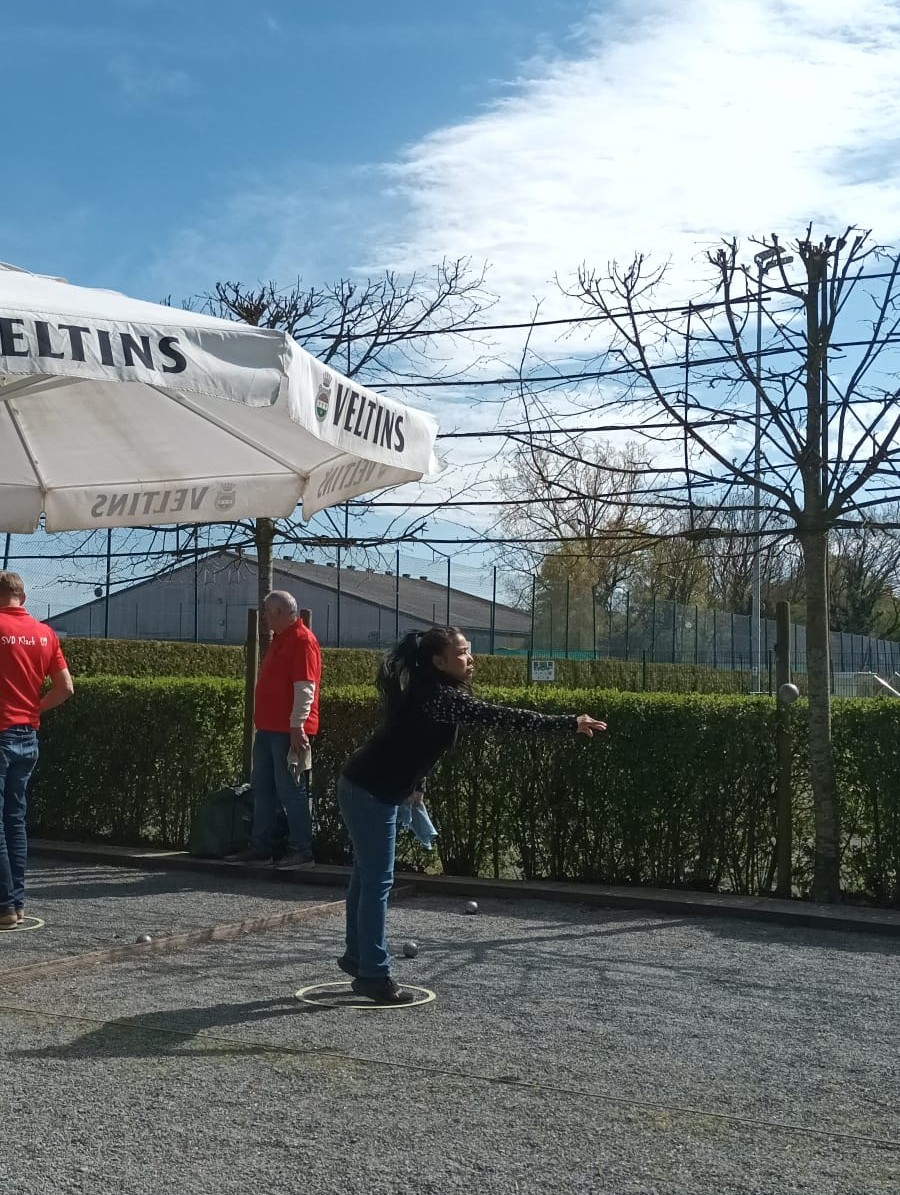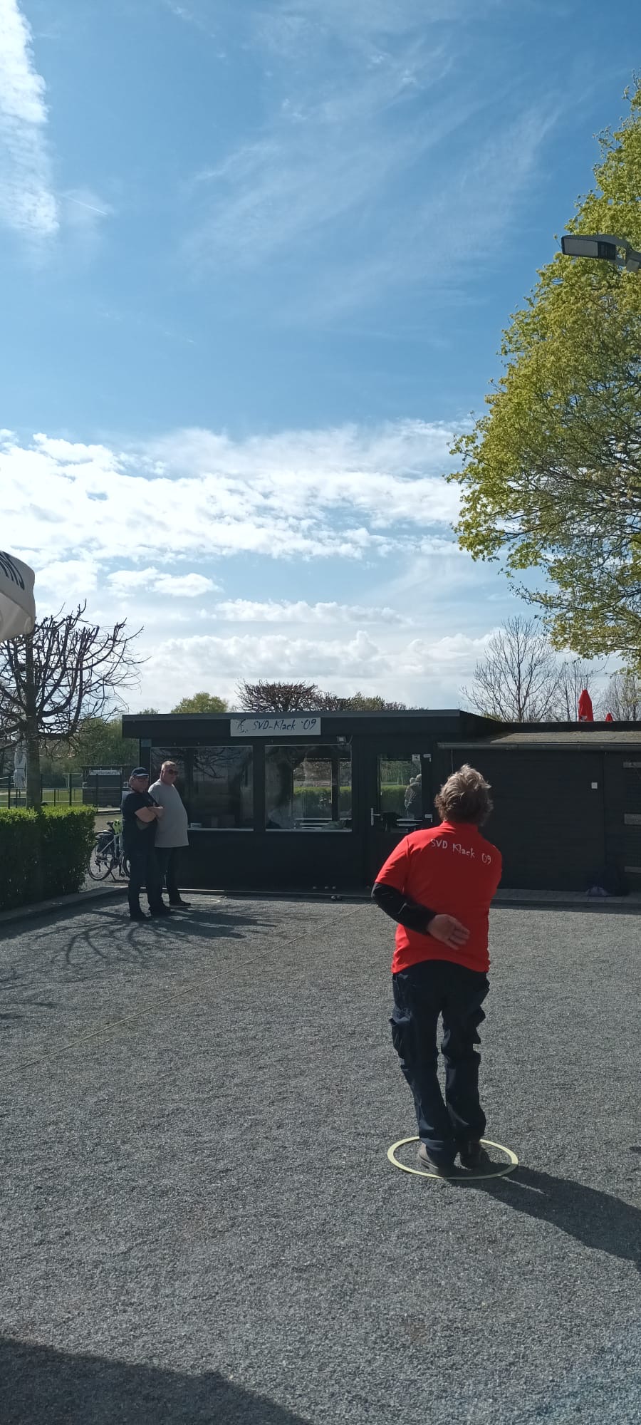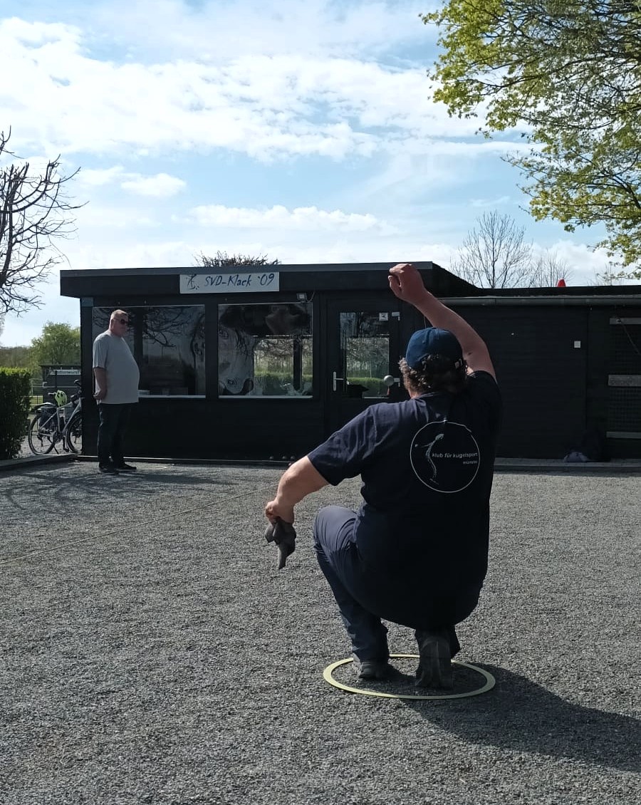 Bei Sonne, Wolken und Wind wurden im schönen Boulodrom des SV Klack 09 zunächst drei Tête-à-tête gewonnen (also auch drei verloren…) und anschließend alle drei Doubletten gewonnen, so dass die Aufgabe für die Tripletten darin bestand, wenigstens eines zu gewinnen. Das erste Triplette ging dank der hervorragenden Legeleistung des Drensteinfurter Teams verloren. (Fünf Kugeln auf dem Durchmesser der berühmten „Tortenplatte“, trotz zweier guter Verteidigungskugeln zwanzig Zentimeter vor der Sau, beendeten das Spiel bei einem Spielstand von 5:8.)