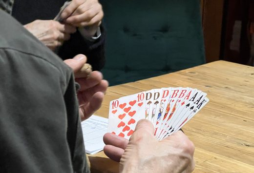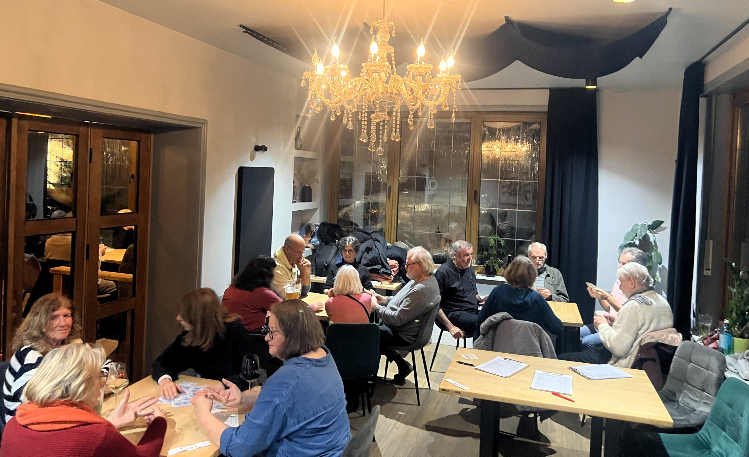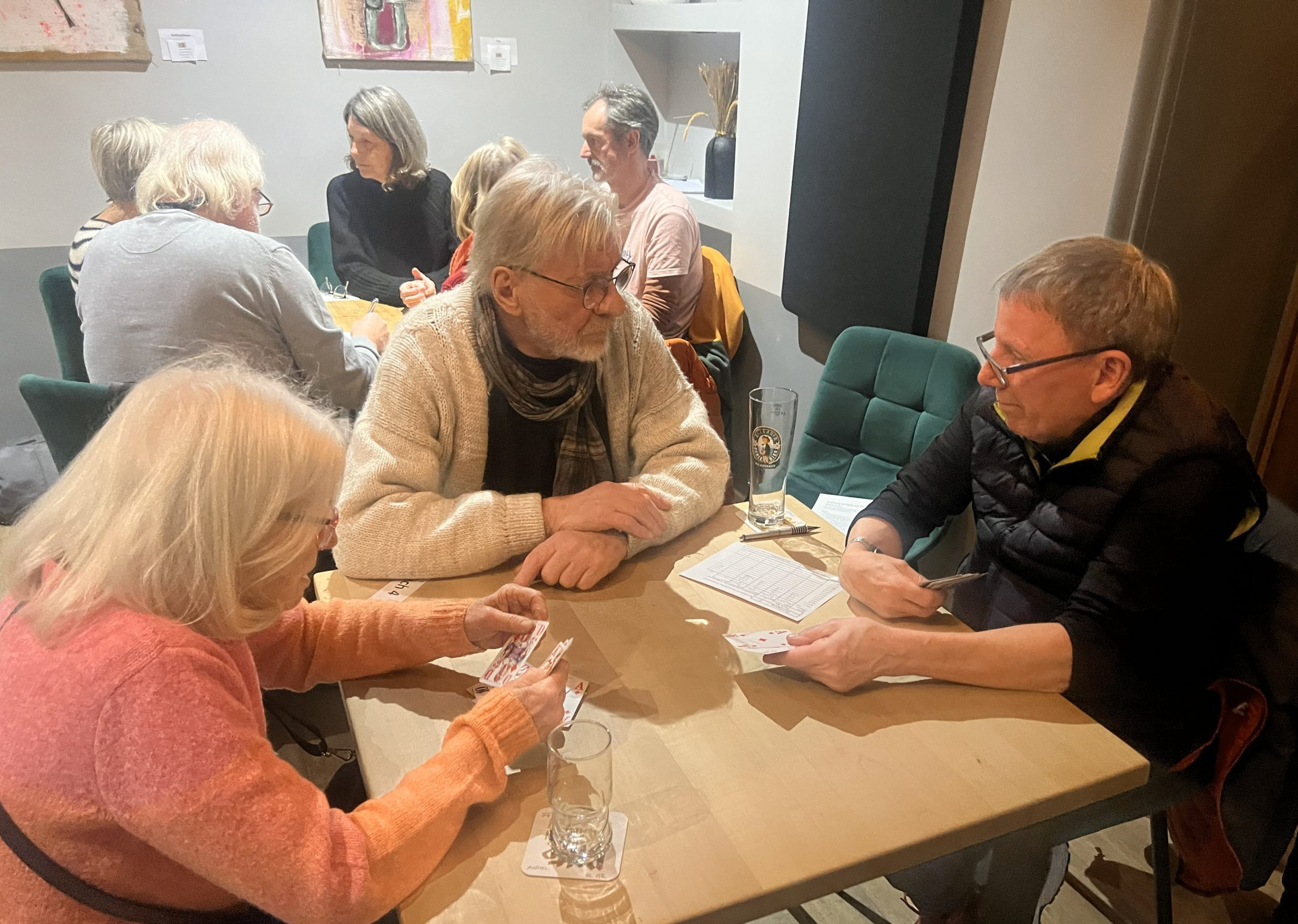 Für die ersten beiden Runden wurden die Tische so arrangiert, dass möglichst neue Paarungen aufeinandertreffen, während die abschließende Runde nach dem Punktestand der Vorrunden zusammengestellt wurde. Gespannte Konzentration mischte sich mit reichlich Vergnügen, denn ernsthafte Kämpfe um die Punkte standen ebenso auf dem Programm wie gelegentliche Kartenglücksklatscher.